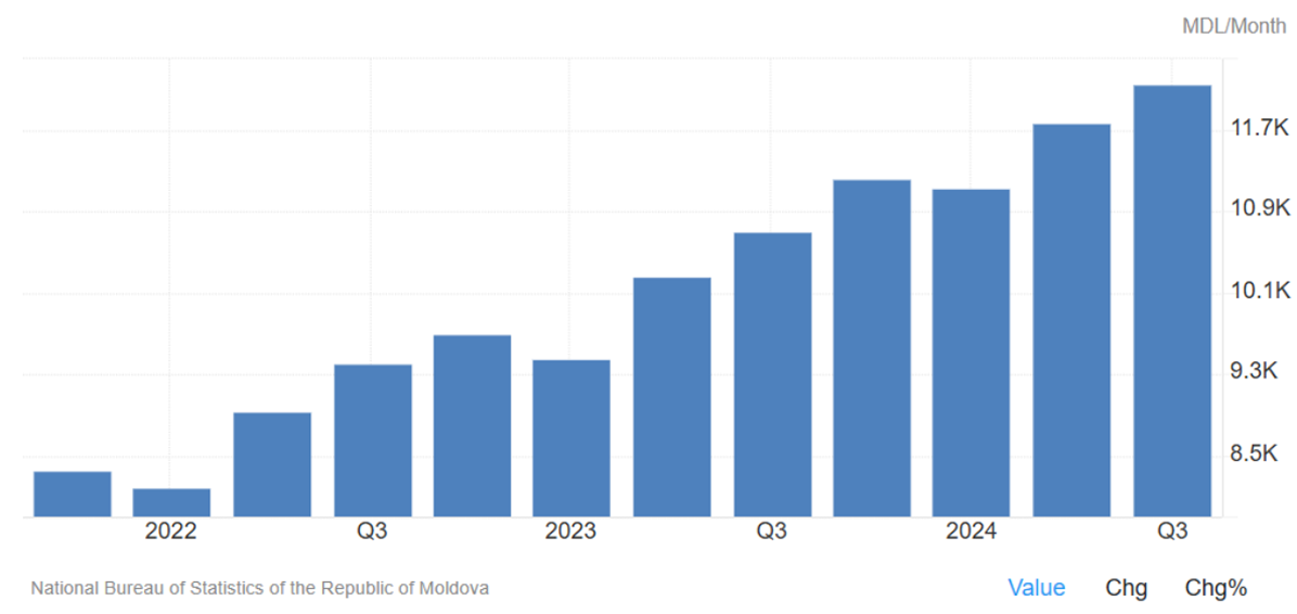 According to the IMF forecasts in the period 2025-2029, the GDP of the Republic of Moldova will grow on average by approximately 5% per year, a much faster pace than the regional average estimated at 3% per year.