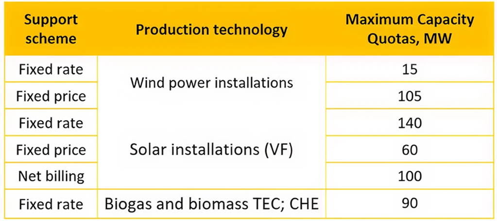 Capacity limits by capacity category in the field of renewable energy